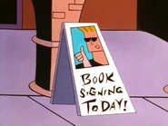 The following morning, Johnny has made it inside the bookstore. Squint's assistant announces to the crowd that there is only one book remaining, and whoever did not get a book will need to leave without meeting Squint. Distraught, Johnny starts judo-chopping and flipping everyone in his way until he reaches the front of the line. He tells Squint that he is a big fan, and demonstrates some of Squint's moves. Squint pretends to be impressed until his assistant whispers in his ear. Squint then asks Johnny if he would like to be on the show, but does not immediately say what Johnny's role will be. Johnny excitedly accepts and daydreams about accepting an Academy Award for his acting. He imagines kissing the beautiful hostess, but in reality, ends up kissing the Prospector's donkey. The Prospector hops around and laughs at him.