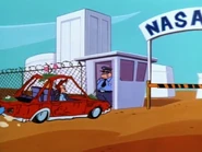 Back at a NASA mission control room, Colonel Gus Grizzle and the operators realize Johnny is their new astronaut and try to convince him to bring the rocket back to Earth. The chimp attempts to redirect their course, but accidentally gets sucked into space when Johnny pulls the wrong lever. After Johnny proves to be incompetent, Carl arrives, armed with sci-fi knowledge and his own technical manuals. He then instructs Johnny to make an object using the only materials within the cockpit. This goes awry as Johnny is soon attacked by the returning chimp, cutting out their signal. The colonel nearly loses hope before the chimp reappears on-screen, having tied Johnny up. It safely guides them back to base, and the operators celebrate its return. Meanwhile, now untied, Johnny crashes a NASA helicopter into a nearby structure, falling to the ground.