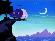 When Bunny Bravo puts in a V-Chip to limit Johnny's TV-watching, he moves into Pops' trailer, which is located on the edge of a dangerous cliff with Carl as his new roommate (in order to get him to pay the first $50 rent).