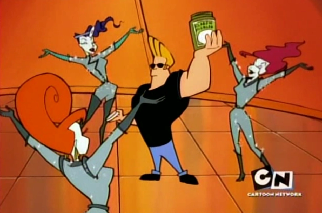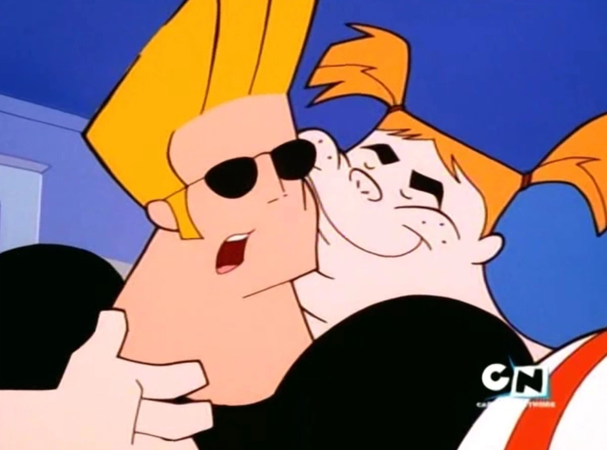 In the first of such bumpers titled "Cartoon Network Mole", Johnny was shown to have decided to give Velma a chance and actually fell in love with her, even asking for her hand in marriage, but sadly Velma had to reject his proposal as she wanted to focus on her career as a detective. In an interstitial for The Cartoon Network Mole, Bravo at "Joe's Diner", where he tells a story about the day he fell in love with Velma and proposed to her, but she rejected him as her career took priority. He quickly bounced back when he spotted Melody of Josie and the Pussycats. That didn't stop them from hanging out and dating though, as seen in many later bumpers. Even Dexter of Dexter's Laboratory had his heartbroken by Velma when he found out that Velma still only had eyes for Johnny.